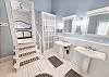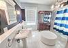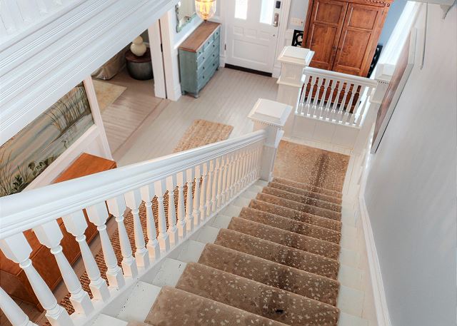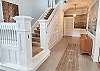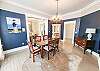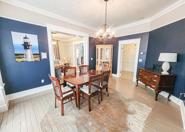 Designed for both style and functionality, the home features all main living areas on the first floor, creating a seamless and inviting flow. The spacious living room offers comfortable, ample seating and a flat-screen television—perfect for relaxing movie nights or unwinding after a day in the sun. The stunning, fully equipped kitchen is truly the heart of the home—complete with granite counter tops, a spacious island topped with gorgeous wood, dishwasher, and double refrigerator—perfect for gathering with family and friends. Just off the kitchen, the dedicated dining room comfortably seats six, creating the ideal space for shared meals, celebrations, and relaxed evenings after a day at the beach. A full bathroom with shower is conveniently located downstairs.